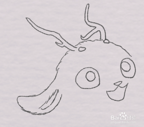 画出一侧的耳朵,再画出眼睛和鼻子嘴巴的基本轮廓
