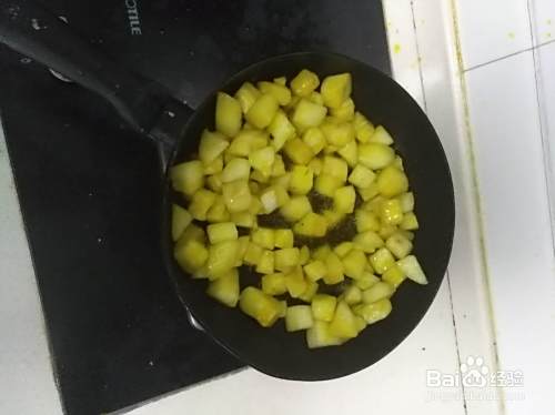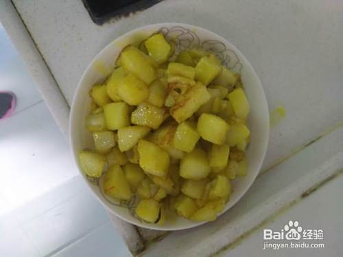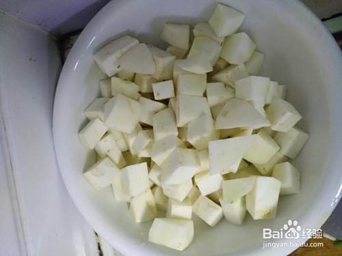 茄子洗干净,去皮,切成1CM左右的块状