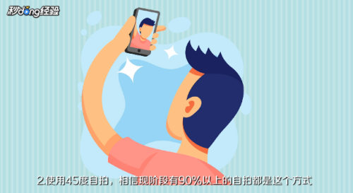 3将手机放于面部前上方45度进行自拍也是很受欢迎的一种自拍方式。