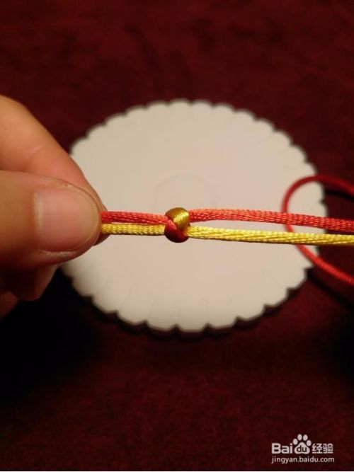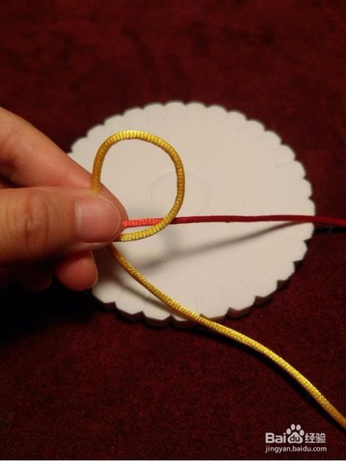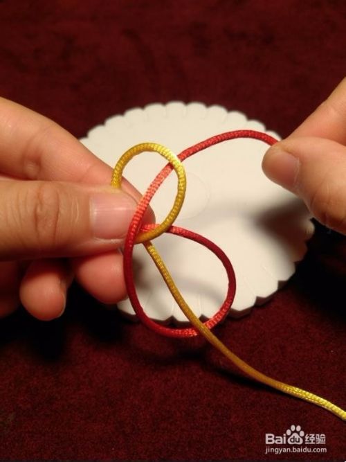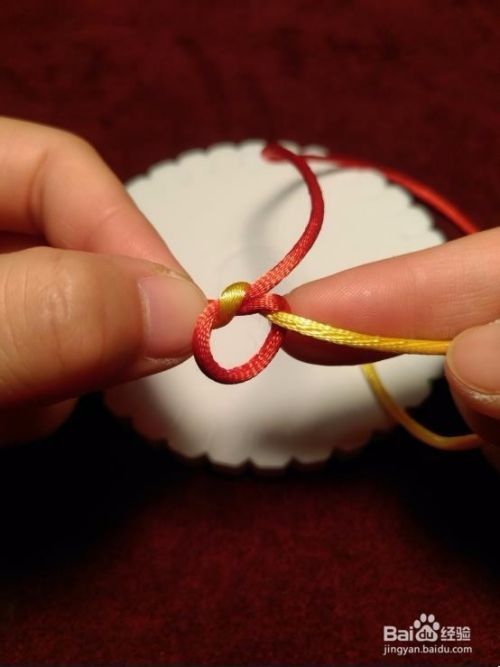 红线从下面绕过黄线,再从黄线圈里穿进去。