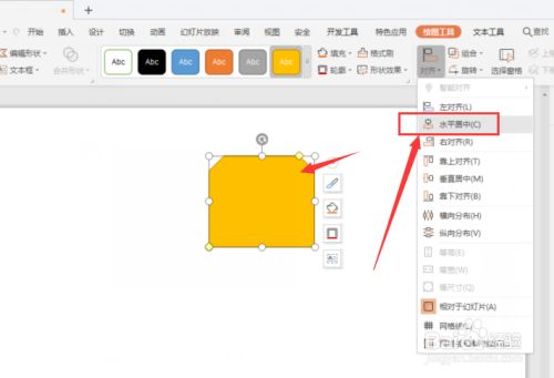WPS幻灯片中如何将形状在文档中居中对齐