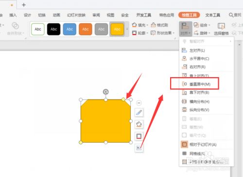 6.然后再选择下方的垂直居中对齐,这样得到形状居中对齐设置