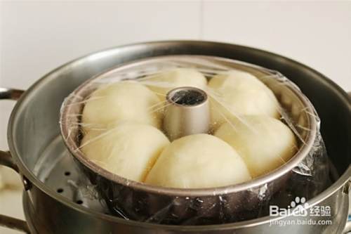 发酵好的胚子,表面盖着保鲜膜,放入蒸锅或者蒸箱,上汽后再蒸30分钟。