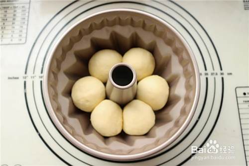 面胚揉圆后放入学厨咕咕霍夫模具里面,开始二发。