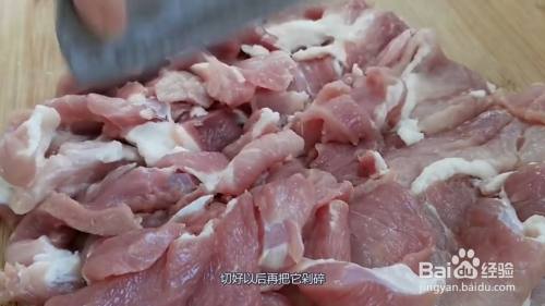 把肉切成薄一点的片,切好以后再把它剁碎,操作这一步的时候可以用绞肉机代替,然后拿出来放入一个大一点的盆里。