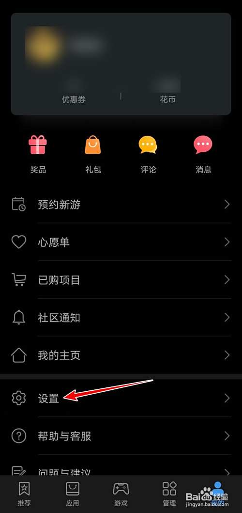 个人页面上方是个人账号,下方是菜单列表,点击设置进入该应用设置列表;