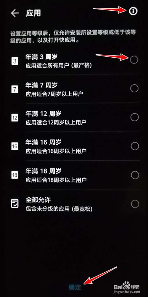 这里把应用各个等级限制的内容解释了一下,然后返回上个页面,根据具体情况选择等级,还需要设置密码;
