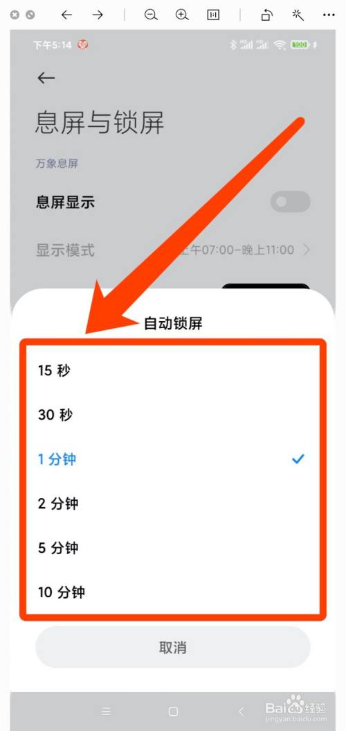 小编选的是“1分钟”,代表我1分钟没有动手机,手机就会自动息屏了。