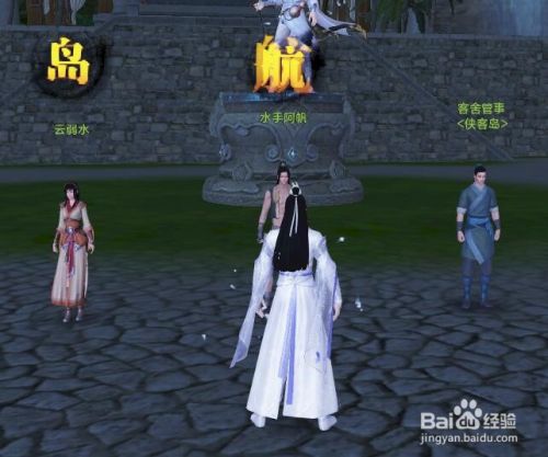 在走到坐标为 侠客岛 ( 1364 2630 ) 这个位置时可以看到三个NPC。