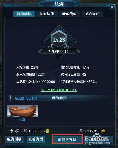 最后就是建筑物的升级需要大量原木和宋钱,原木主要是通过侠客岛内部的种植或者树木砍伐获得,也可以通过海上击沉海盗船获得一定的原木,而宋钱则是跑商、海战之类的活动可以获取。