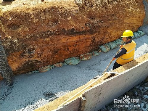混凝土划到挡墙基础下方之后,需要把下方的混凝土使用人工铺平