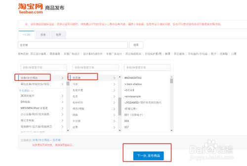 选好类目后如图所示,最右侧是品牌,如果不知道,或者没有找到您的商品品牌可以不用选,点击”下一步,商品发布“。