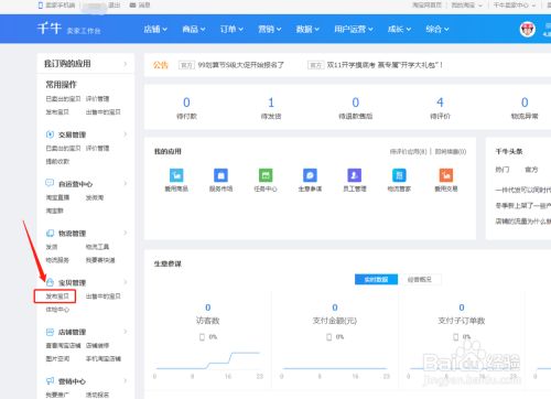 2.回到卖家中心---宝贝管理---发布宝贝。