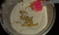 油酥面团制作 100G中粉中加入50G玉米油拌匀,和成油酥面团 放入保鲜袋中,松驰30分钟