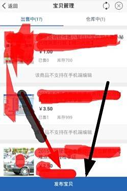 首先我们要有这个客户端没有的大家可以百度下,这里我们打开主界面如图箭头所指发布宝贝我们即可进入到商品的编辑界面对相关商品进行手机编辑后上新;