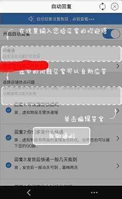 首先我们要开启自动回复并根据提示对日常的短语进行自定义回复编辑;