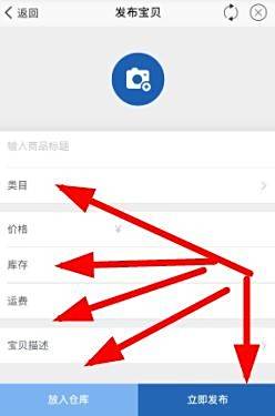 在宝贝编辑界面我们依次将图片信息宝贝标题及相关描述进行相关的编辑(图片可以提前做好也可以用手机美团软件进行编辑后)发布新的宝贝即完成手机上新的操作。