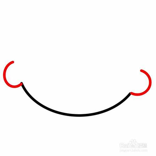 11、首先,我们需要画出一条弧线,注意弧线的长度与弯曲程度,如下图。然后在弧线的两端画上一对括号,线条要更弯曲一点,就像字母“C”一样,作为小女孩的耳朵。