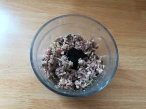 荔浦芋头、蒜苗、泡好的香菇切丁备用。碗中放入肉末、荔浦芋头、蒜泥、香菇、生抽、蚝油、适量的盐,搅拌均匀。