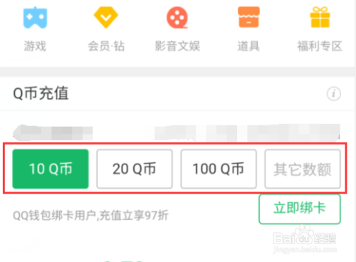 进入后,可以根据自己的需求,选择或输入充值Q币的数量;
