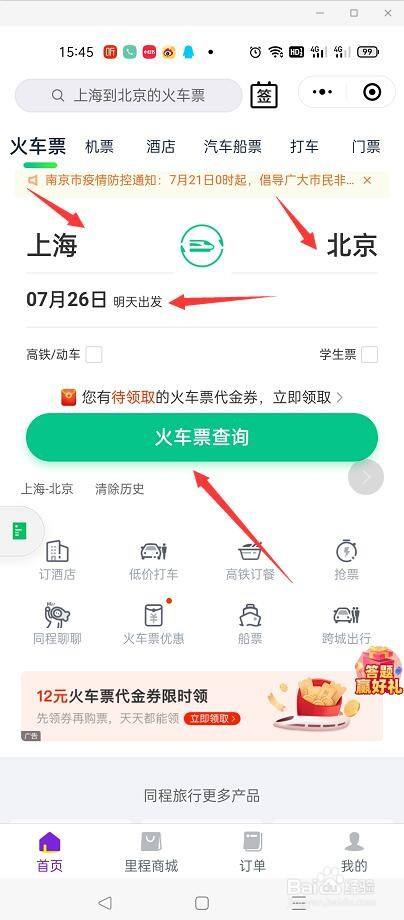 微信在哪里进入购买火车票的通道呢?