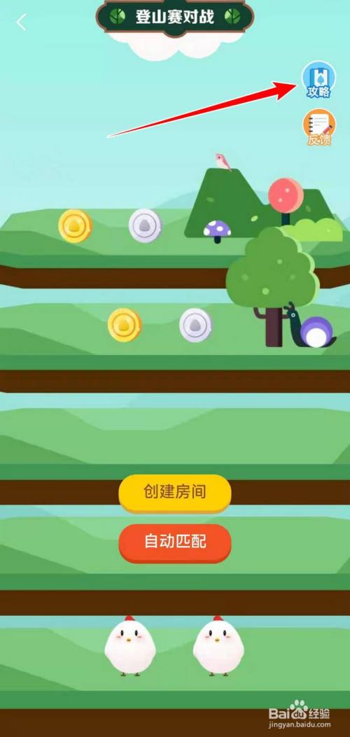 打开运动会列表,选择登山赛对战版,打开游戏界面,测试中,选择右上方的攻略;