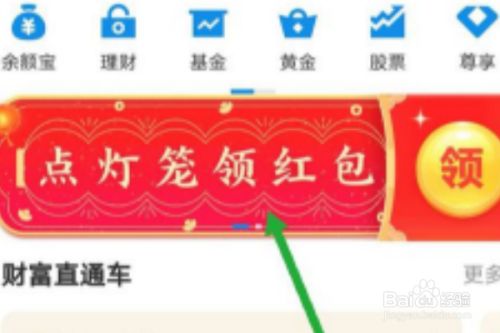 1、点击最下方的财富,再点击页面上的点灯笼领红包。