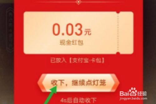 然后进入支付包页面之后,再次进入点击点灯笼页面,就可以收取到红包啦。