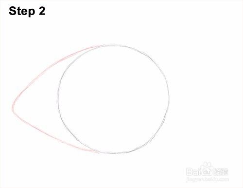 第3步:在圆圈的右侧画一条弧线,完成食人鱼身体的导向。这个弧应该稍微短一些。然后组合形状的最终结果应该与眼睛相似。