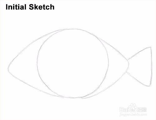 第1步:在页面中部附近画一个圆圈,作为食人鱼身体的指南。首先画出四个小标记来指示圆的高度和宽度,然后用曲线连接标记。首先轻描淡写,以便在犯错时很容易清除。但是这个圈子并不一定是完美的。这只是一个指导。如果你想绘制一个完美的圆,跟踪杯子的外缘,盖子或任何其他物体的圆形边缘。