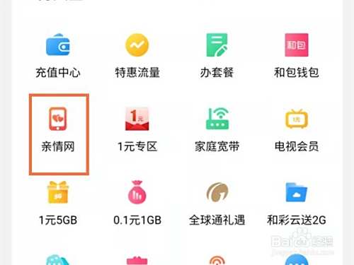 3、点击亲情网。