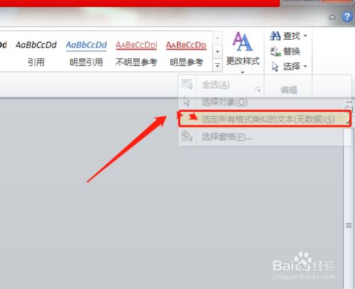 然后点击左上角的选择,在下拉菜单里选择选定所有格式的类此文本。