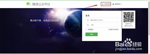 搜索微信公众平台官网首页(mp.weixin.qq.com),点击右上角的“立即注册”按钮。
