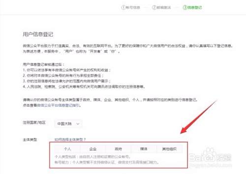 进行小程序的信息登记,注意个人类型小程序暂不支持微信认证、微信支付及高级接口能力。