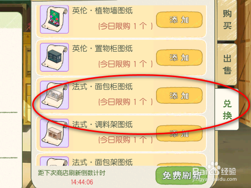 选择兑换选项卡,添加法式面包柜图纸
