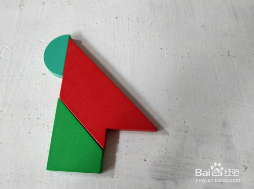 在红色形状的下面,放上绿色梯形挨着,左端一齐,如图。