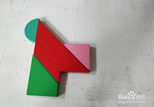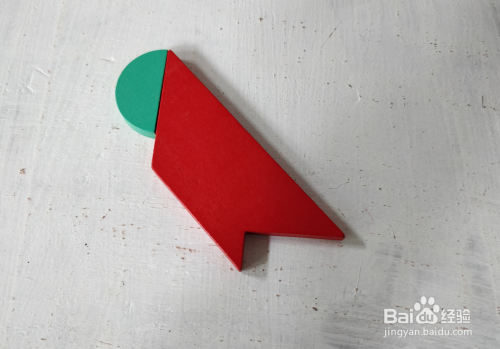 放上半圆形,右侧放上红色形状挨着,缺口右下,如图。