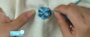 开始绣花瓣,从中心穿出,采用压一穿一的方式绕出花瓣,要一边绣一边整理,若想立体丰满一点,可绕的松些,若想平整一点可收紧些。
