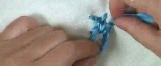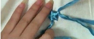 从确定的中心点穿出,绕过原先那根线,从对面那点穿下,定点时,线可弄细一点,可以把线绕几圈并稍拉紧一些。