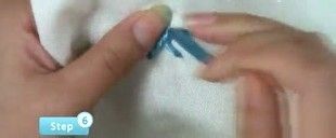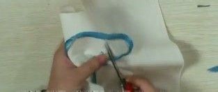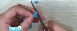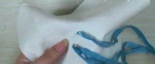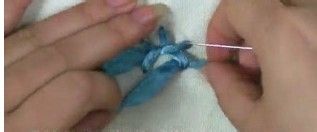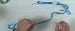 丝带一端剪成斜角,方便穿针,把丝带穿入针内,备用。