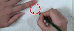 用铅笔在布上轻轻玫瑰五个花瓣的定点图,画的时候五个定点一定要均匀,这样最后绣出的玫瑰才好看。