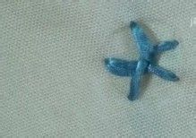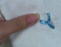 开始定点,针从绣布背面经过一个点穿出,从相邻的另一点穿下去,这时丝带不必拉的太紧。