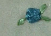 为了使图案整体更漂亮一点,可用绿丝带做成叶子缝好。这样一朵漂亮的丝带玫瑰就做好了。