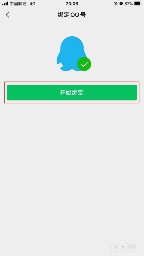 在“绑定QQ号”的页面中,点击下方的“开始绑定”按钮。