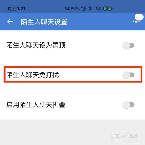 最后点击滑动陌生人聊天免打扰的滚轮,即可完成陌生人聊天免打扰的设置。