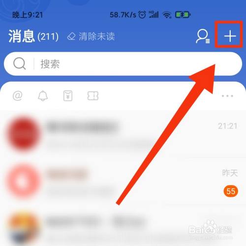 打开淘宝APP,选择页面右下方的消息按键,再点击页面右上角的加号菜单。