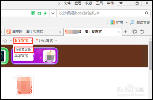 登录网页版淘宝,点击上方【联系客服】--【消费者客服】;