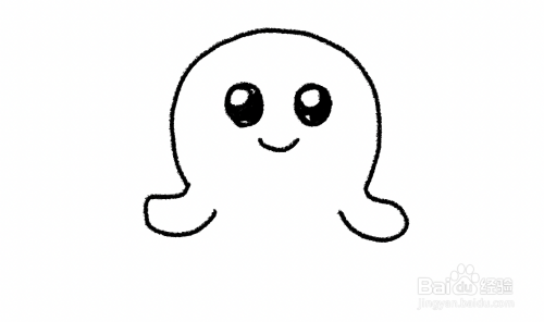 接着在半圆里边画上眼睛和微笑的嘴巴。