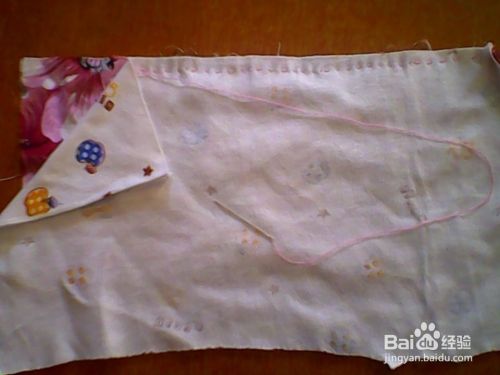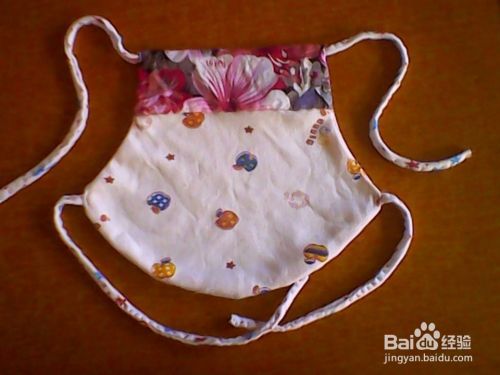 缝好四条小带子,再分别缝到小肚兜上,这样小肚兜就做好了。