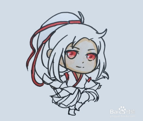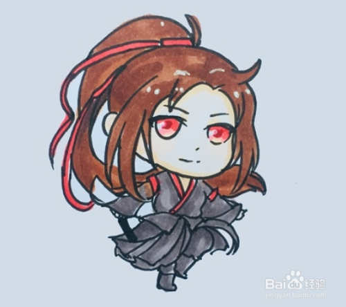 最后把衣服涂成不同深浅的黑色,再给头发涂上高光,魏无羡简笔画就完成了。